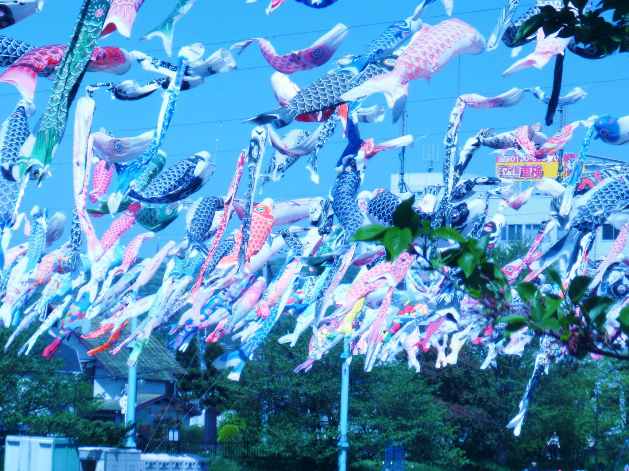 芥川桜堤のこいのぼりです。4月29日の『こいのぼりフェスタ1000』に始まり、5月6日の今日まで初夏の光と風の中を元気いっぱい泳いでいます。桜堤公園には小さな子からお年寄りまで家族連れも多く、たくさんの人が楽しんでおられます。ここは花見の名所でもあります。