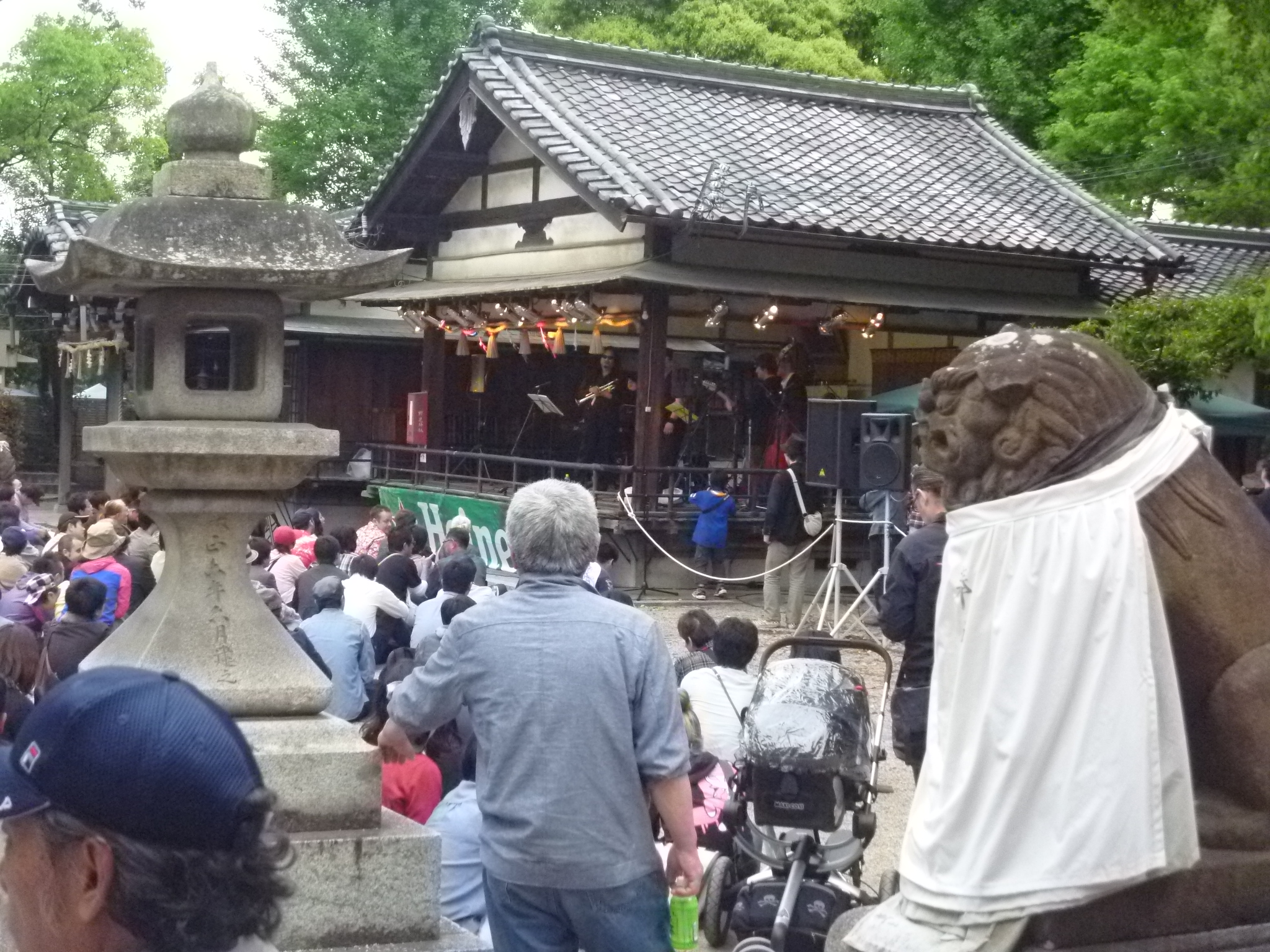 毎年5月3日、4日に高槻ジャズストリートが開催されます。全国から、また外国からの参加者も含めて約3000人のミュージシャンが集まり、高槻城跡公園、野球場、高槻第一中学校、府立槻の木高校、能見神社、現代劇場をはじめ、阪急高槻市駅、JR高槻駅周辺46もの会場で2日間ジャズの演奏が繰り広げられます。14回目を迎えますが、全国最大級のジャズフェスティバルに育っています。高槻ジャズストリート実行委員会はボランティアで支えられ、ミュージシャンたちの評価も高く、日野皓正さんが参加された年もあります。今年は宇崎竜童さんが参加されました。岸ミツアキ、スコット・ハミルトンなど国際的に活躍しているミュージシャンが目白押しです。高校生などのアマチュアバンドもたくさん参加しています。